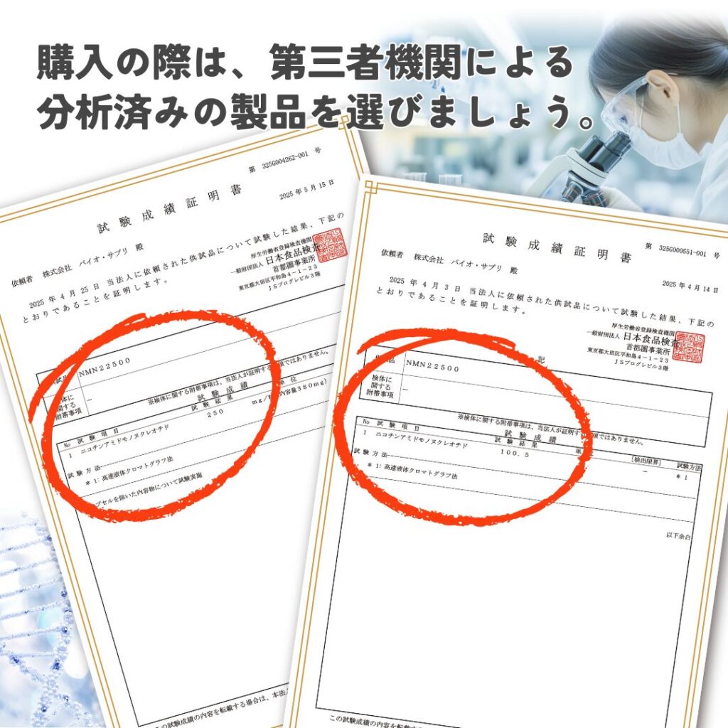 市場にはNMN含有量が不十分な製品もあるため、信頼できる分析済み商品を選ぶことが大切です。